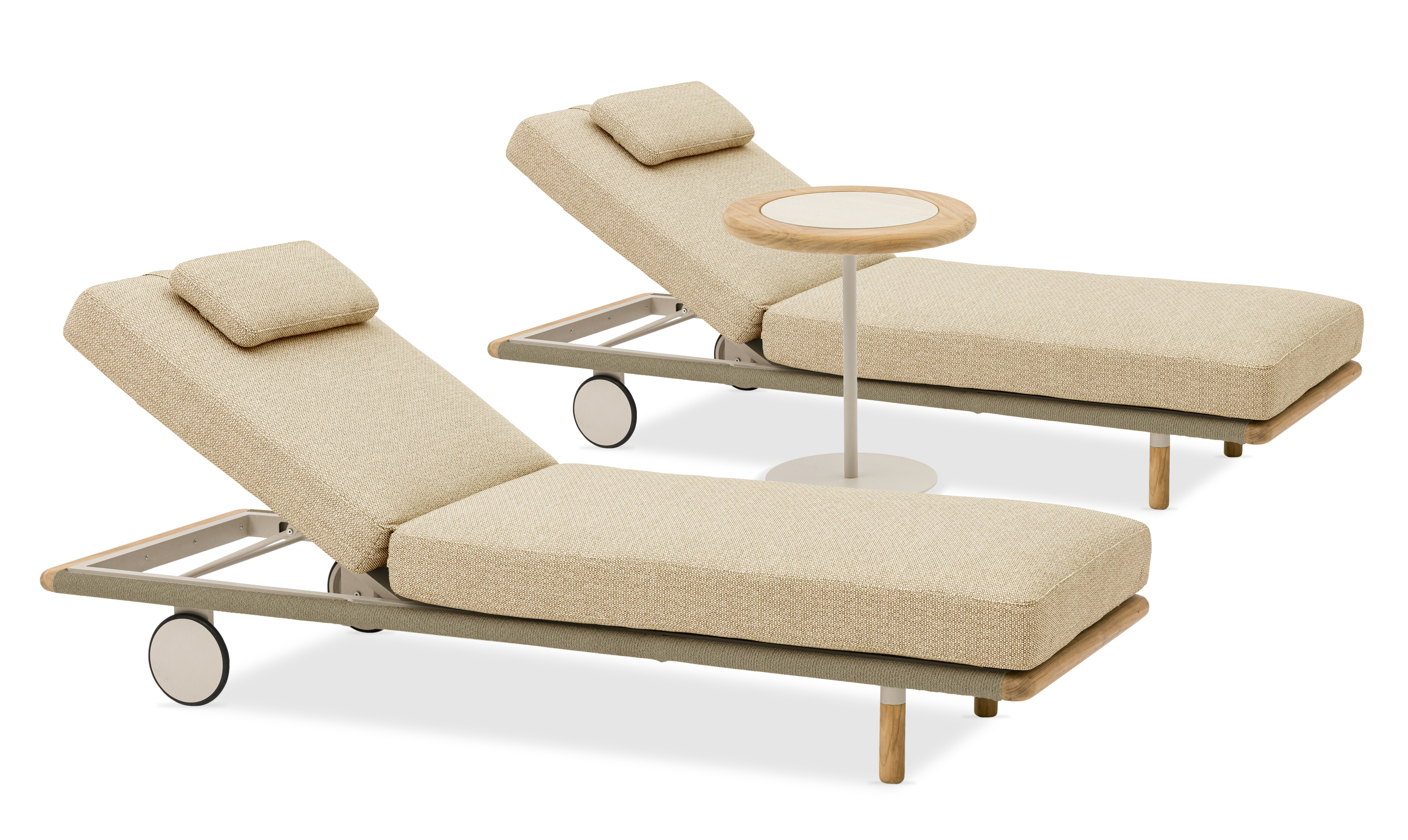 Олефиновое плетение придает изделиям неповторимый внешний вид, а алюминиевый каркас с элементами из тикового дерева обеспечивают прочность и долговечность.