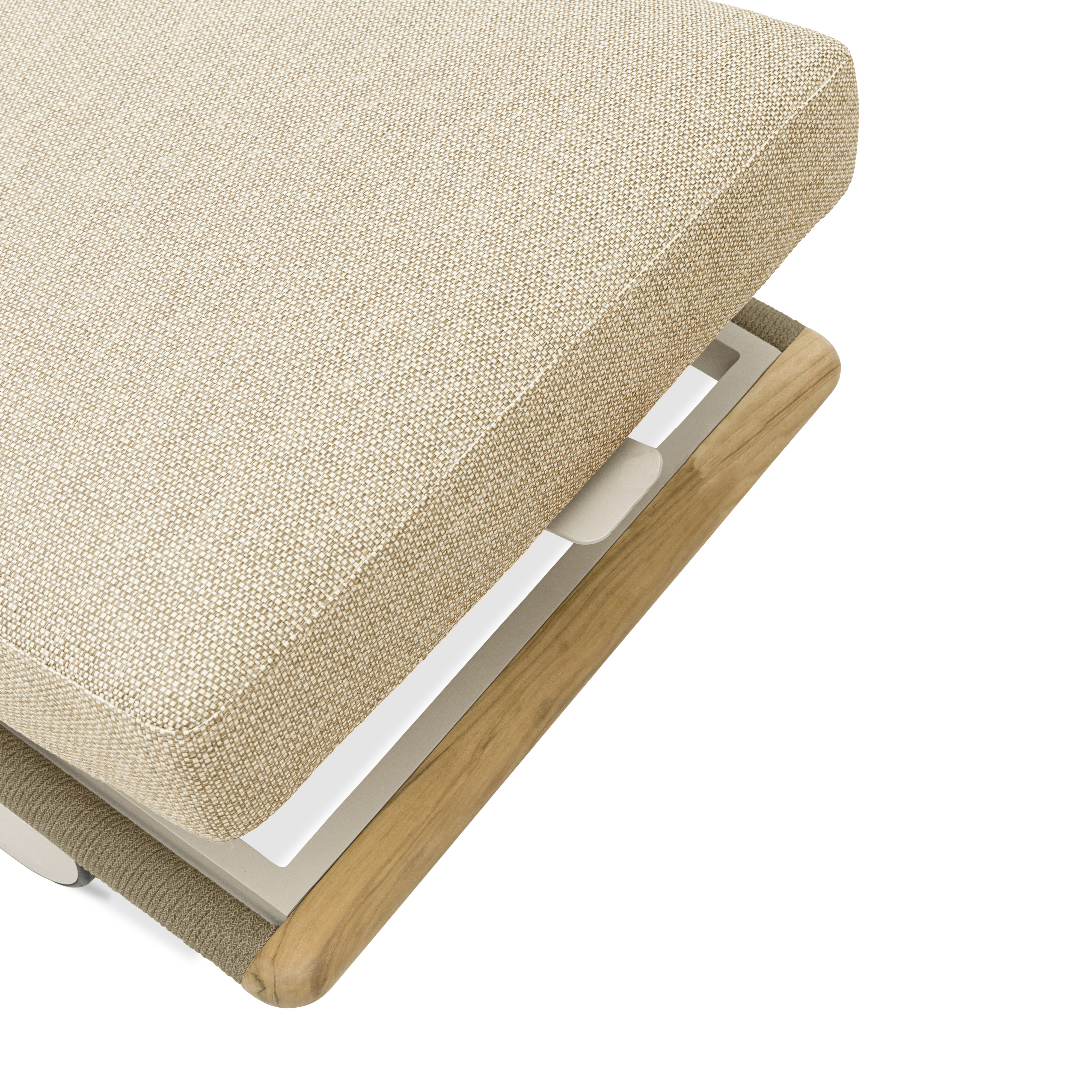 Наполнителем подушек служит пенополиуретан, что гарантирует комфорт при использовании. Стол c керамической столешницей с тиковыми вставками и другие элементы коллекции прекрасно сочетаются друг с другом, создавая единый гармоничный ансамбль.