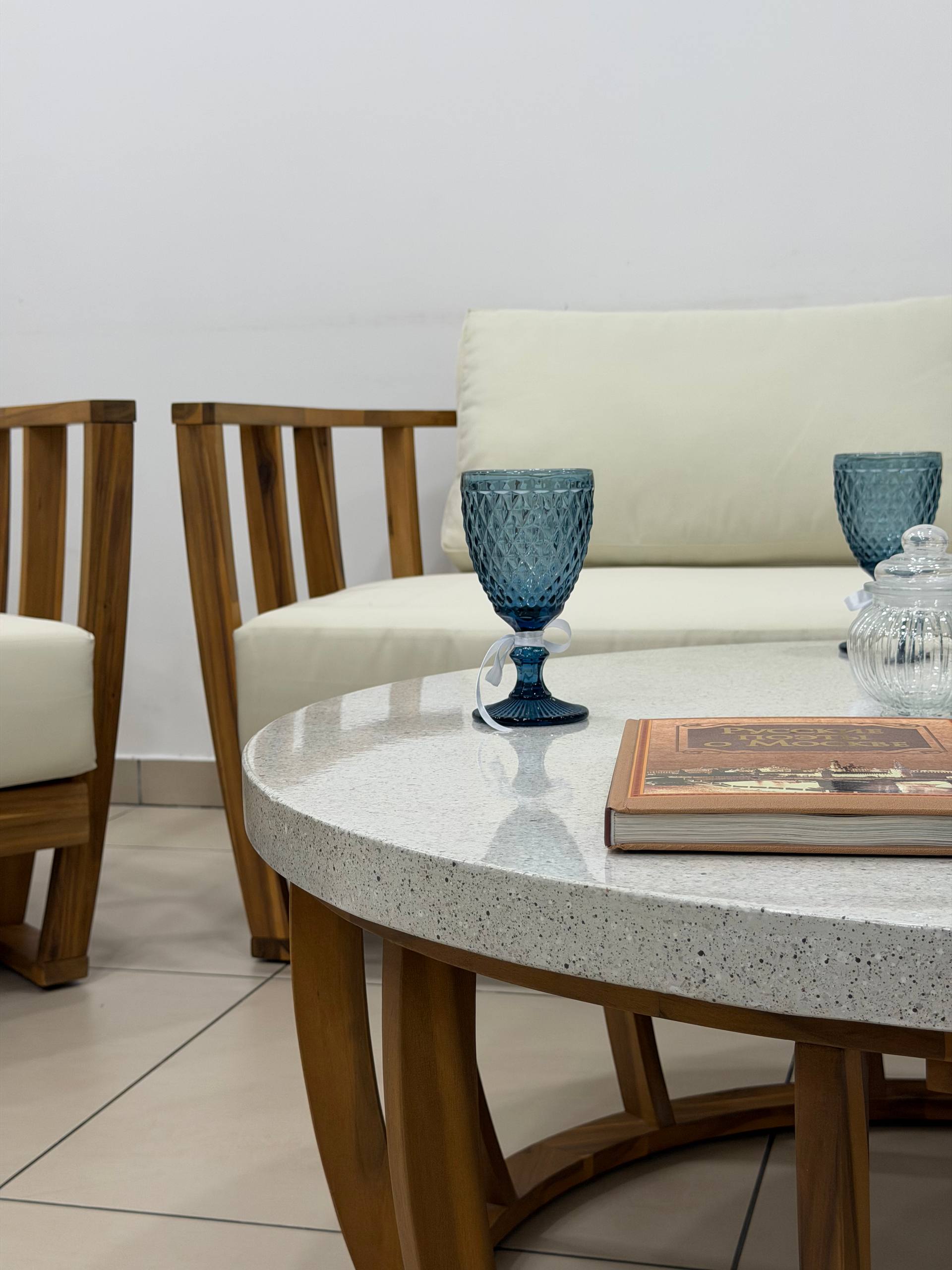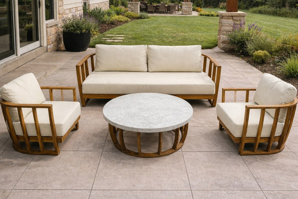 Эта зона покоряет прочностью и благородством: каркас из массива акации радует изысканной текстурой, теплым натуральным оттенком и феноменальной надежностью, легко выдерживая нагрузку до 150 кг. Водоотталкивающие чехлы из изготовлены из специальной ткани - олефин, они не бояться брызг или росы, а съемные чехлы позволяют стирать их когда угодно. Комфорт адаптируется именно к вам благодаря мягким подушкам с современной начинкой из пенополиуретана и холлофайбера, которые сочетают упругую поддержку с нежным уютом, не сминаются и мгновенно восстанавливают форму.