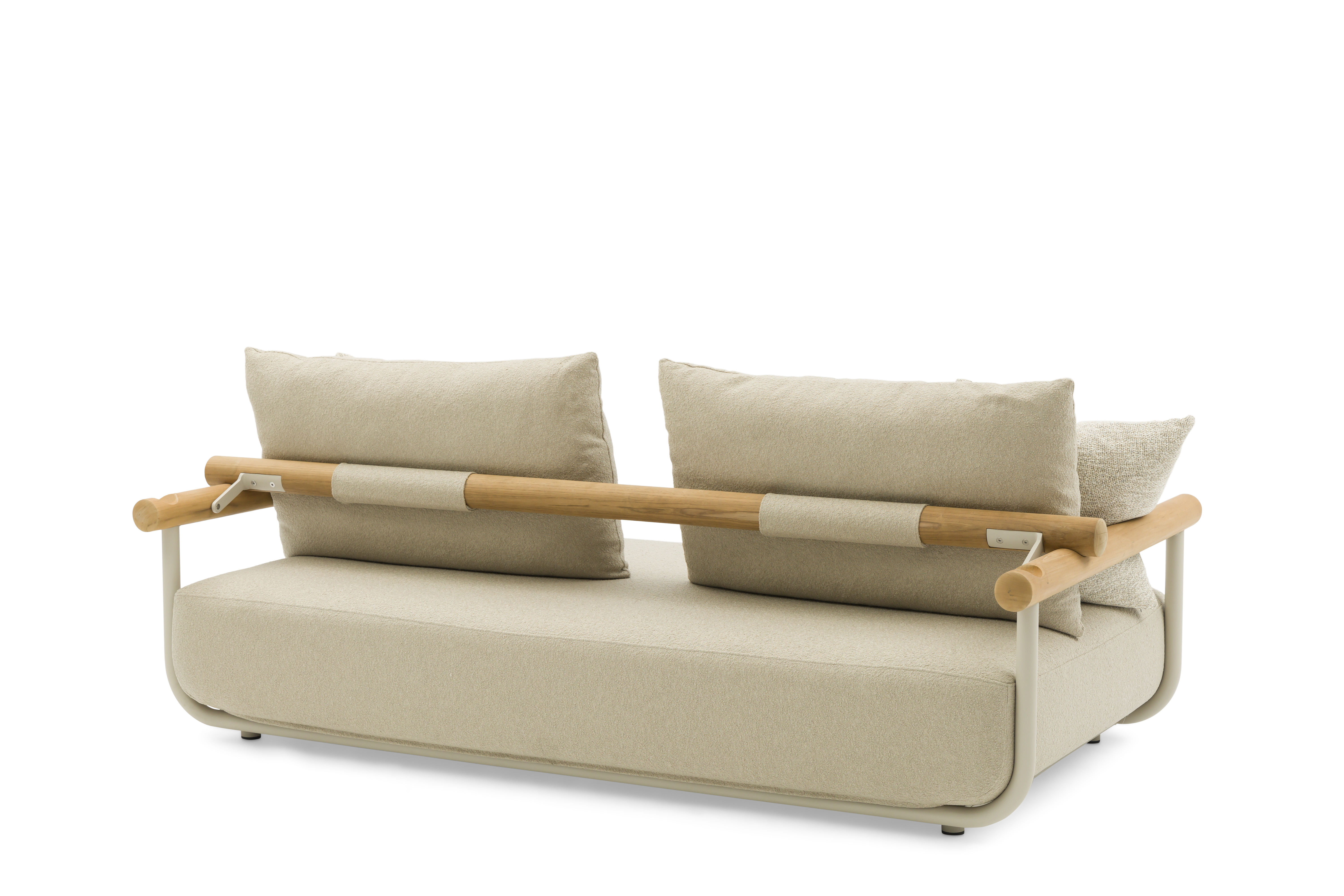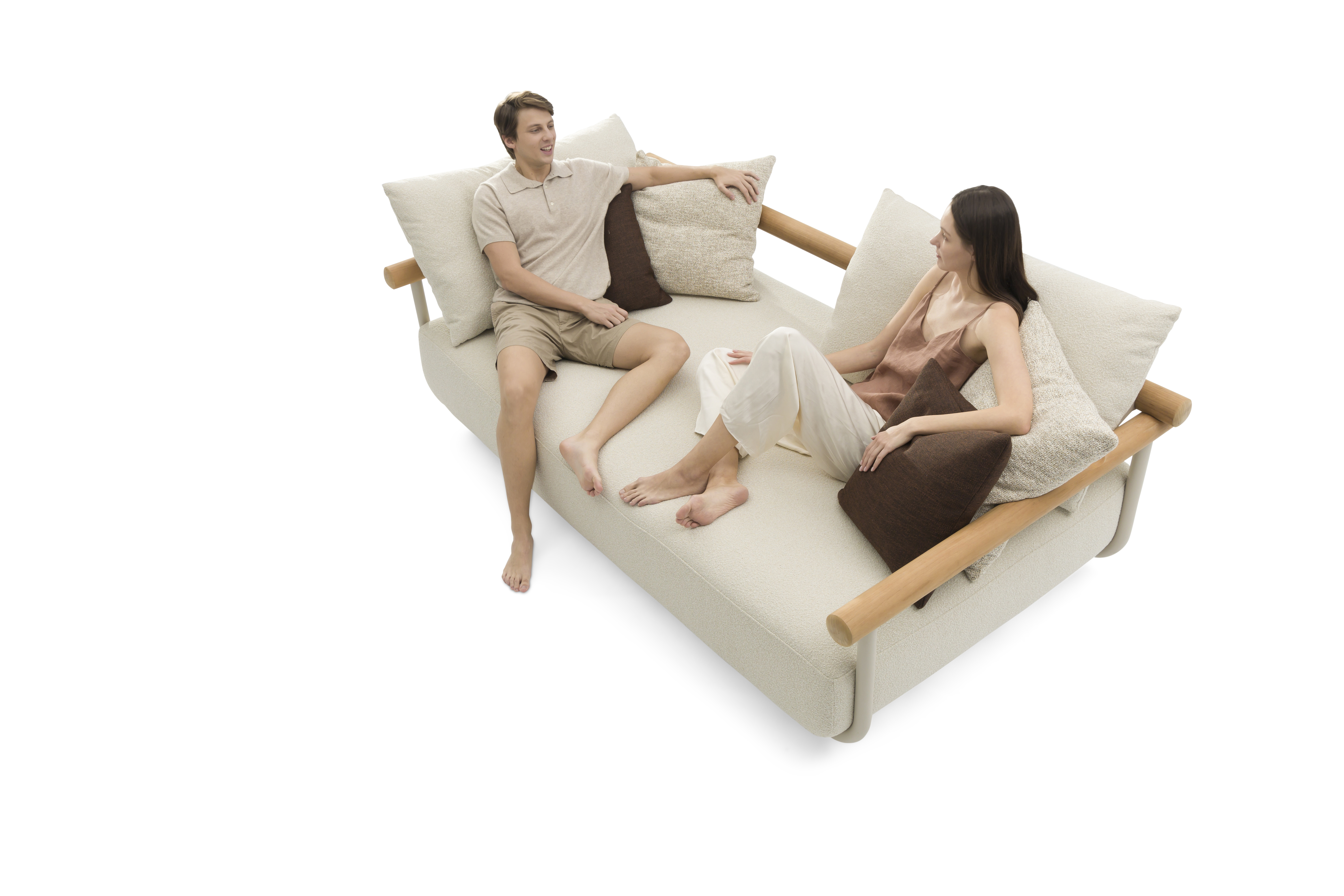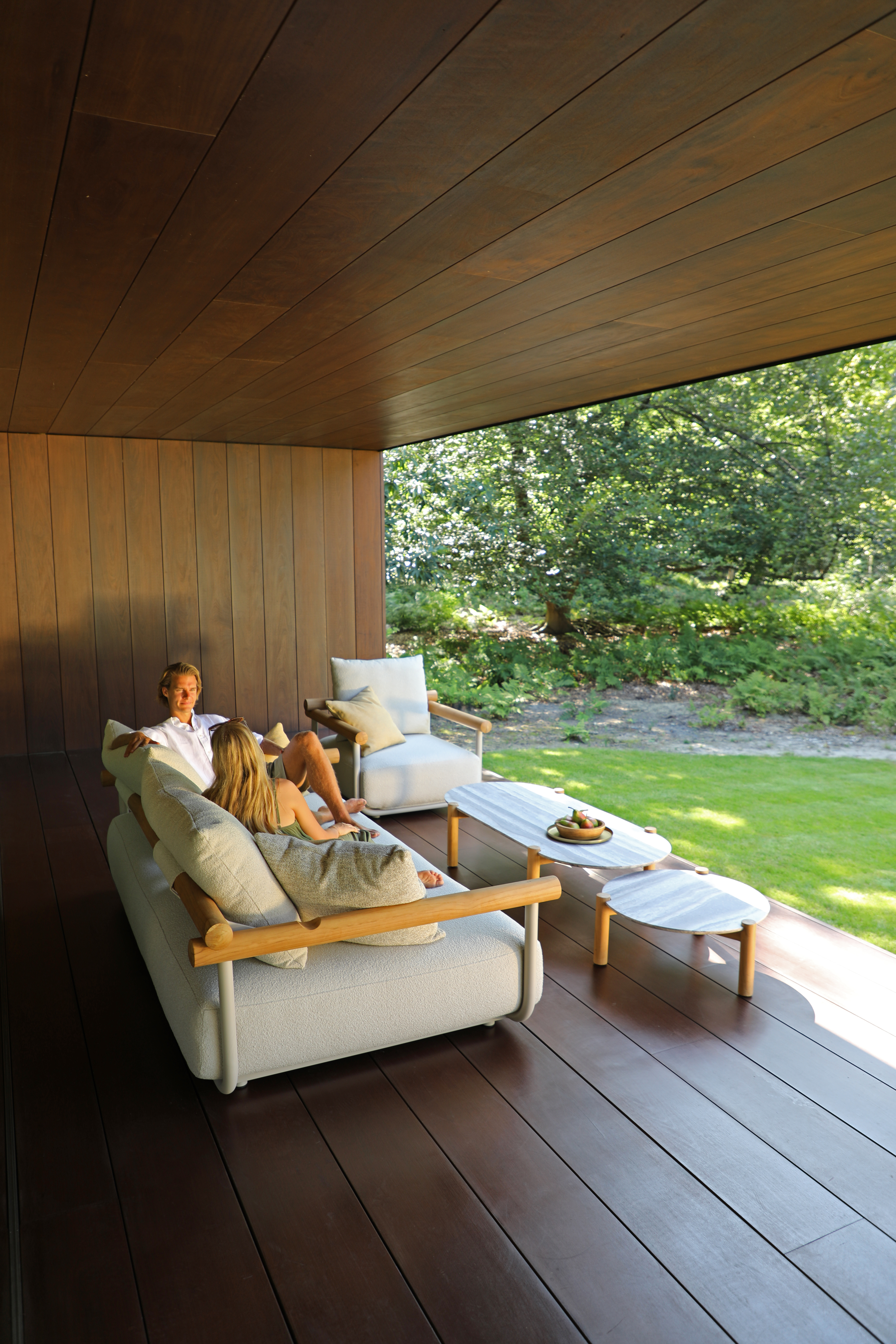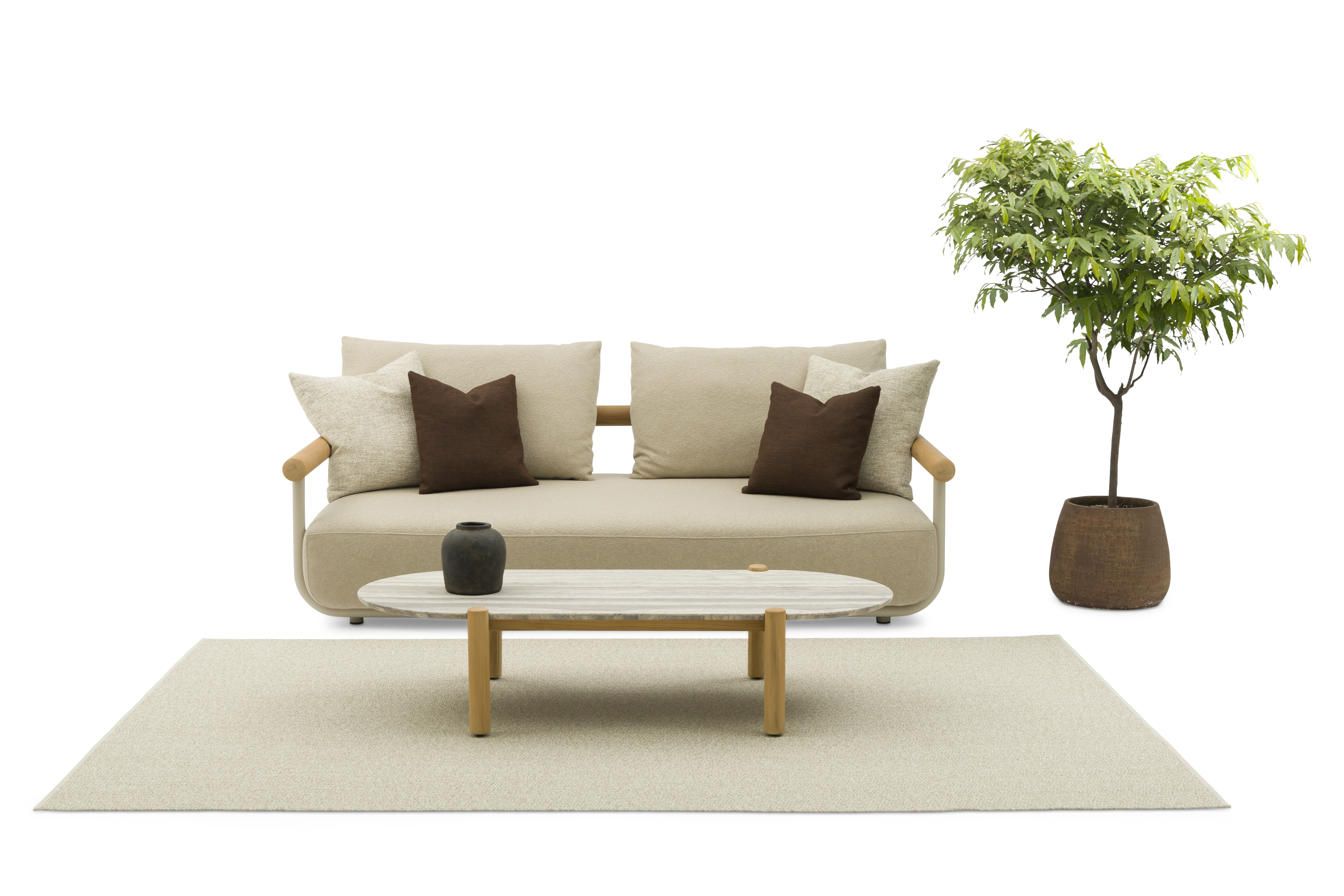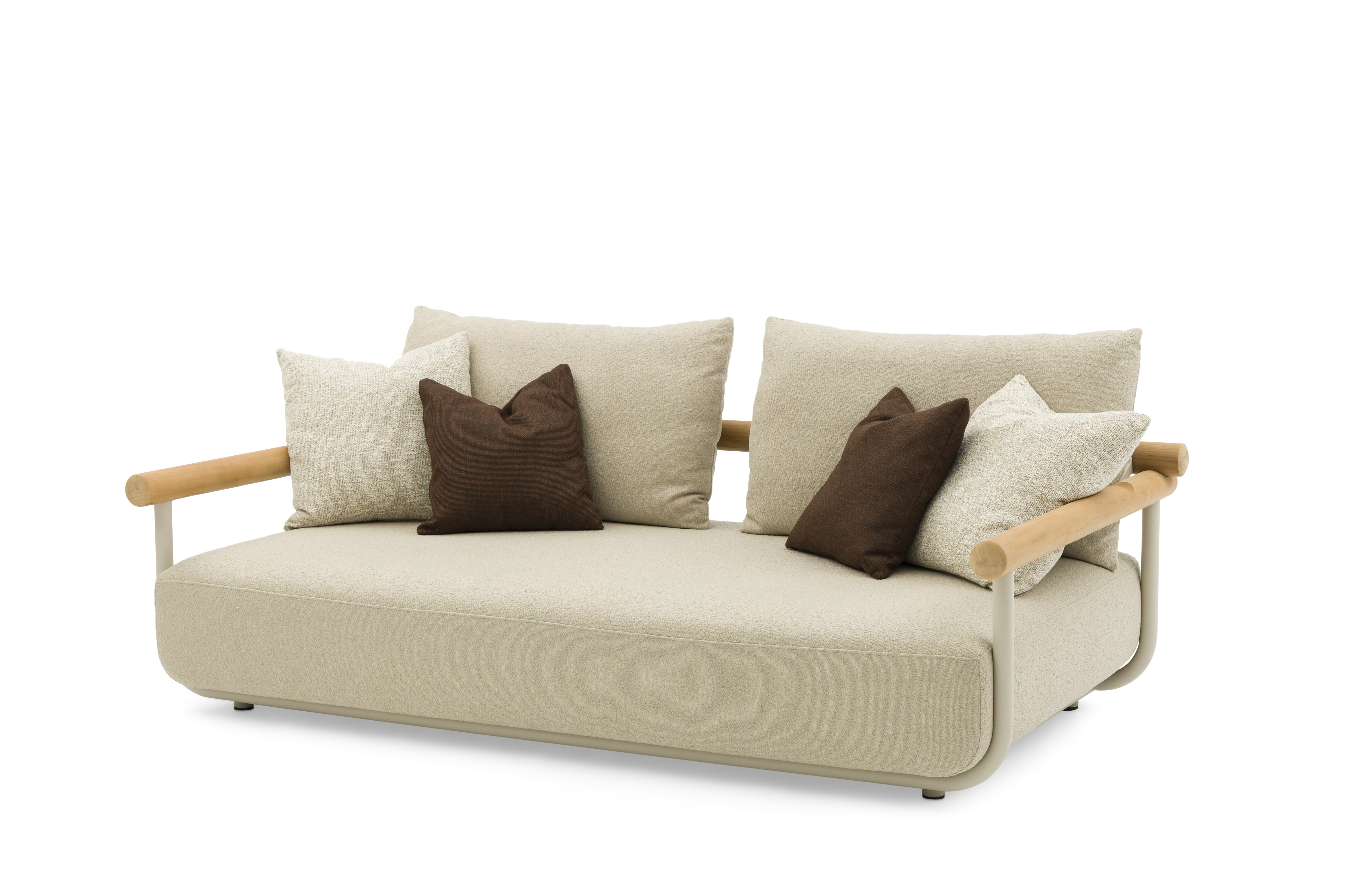 Каркас выполнен из прочного и лёгкого алюминия в сочетании с натуральным тиковым деревом, что гарантирует долговечность и стойкость к погодным условиям. Подушки покрыты водоотталкивающей тканью Олефин с защитой от солнца – они сохранят яркость цвета и комфорт даже при длительном использовании.