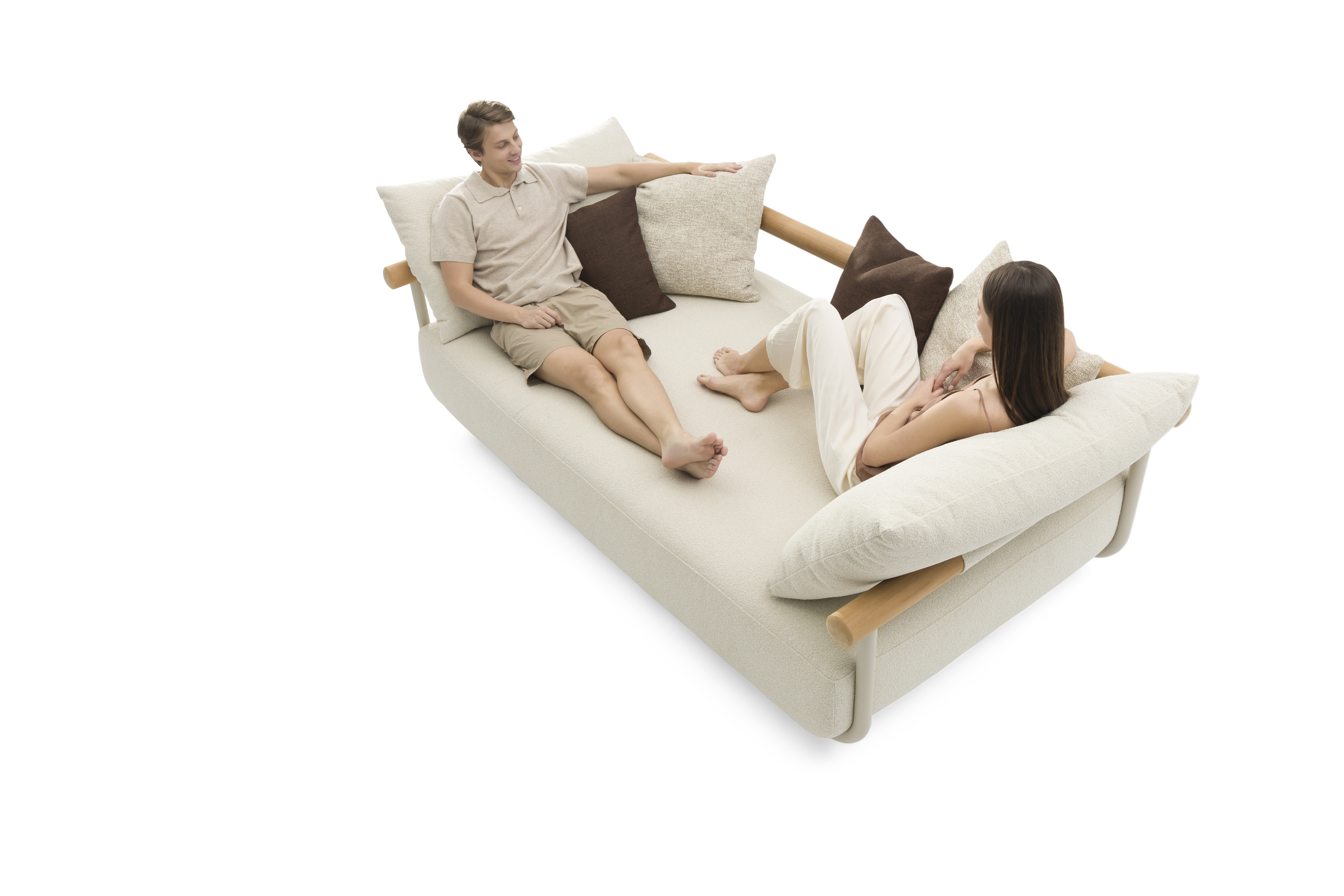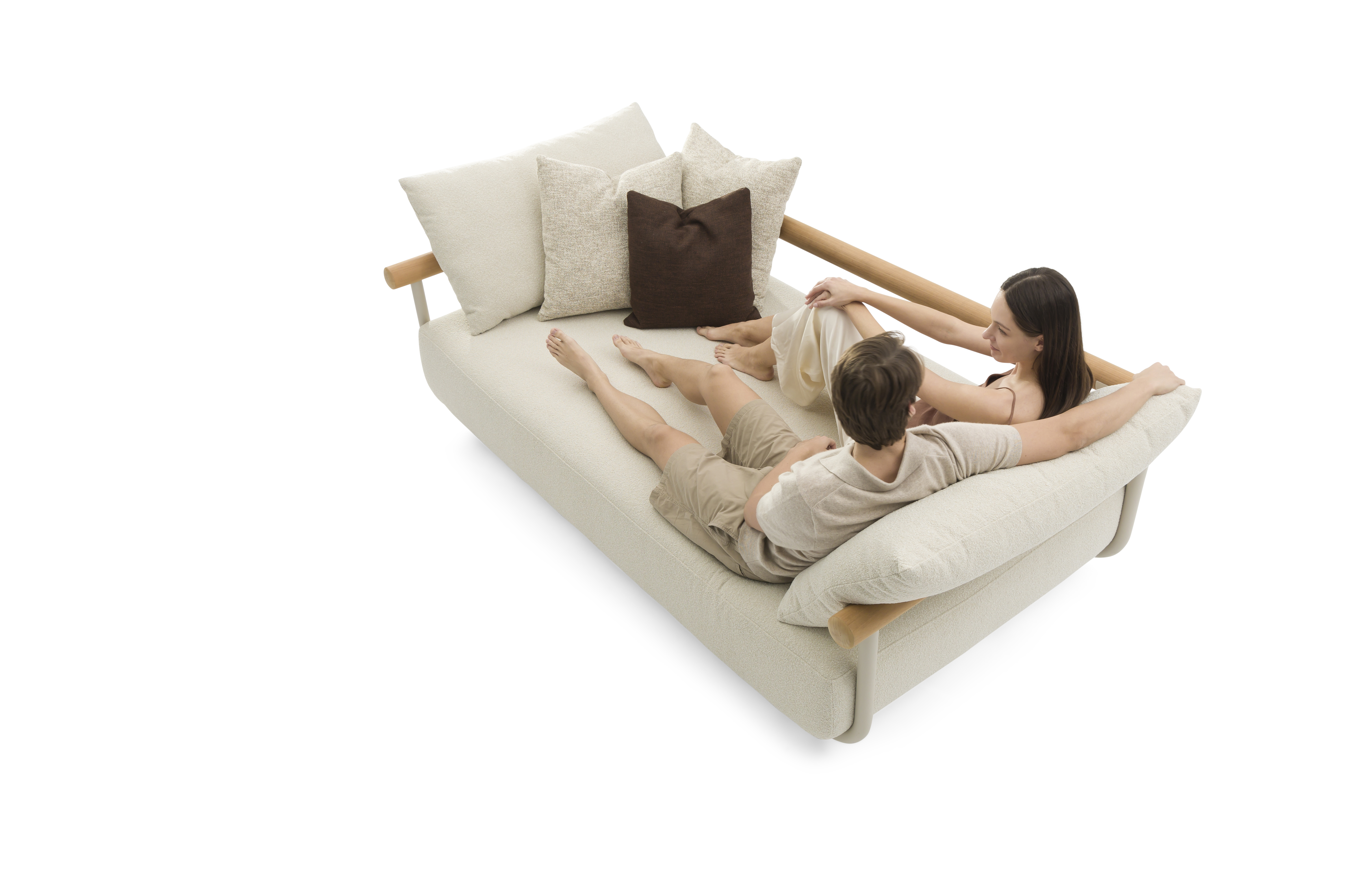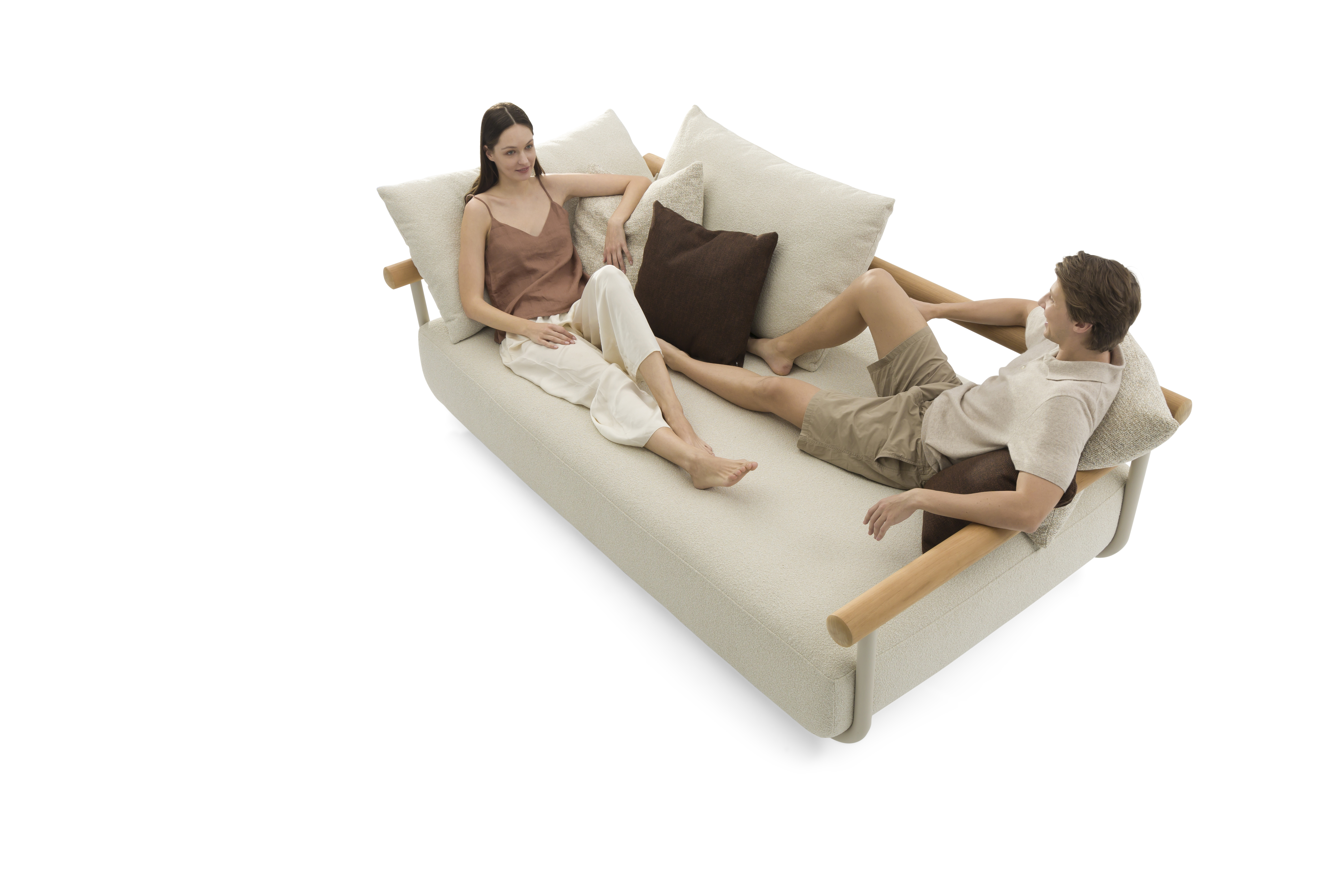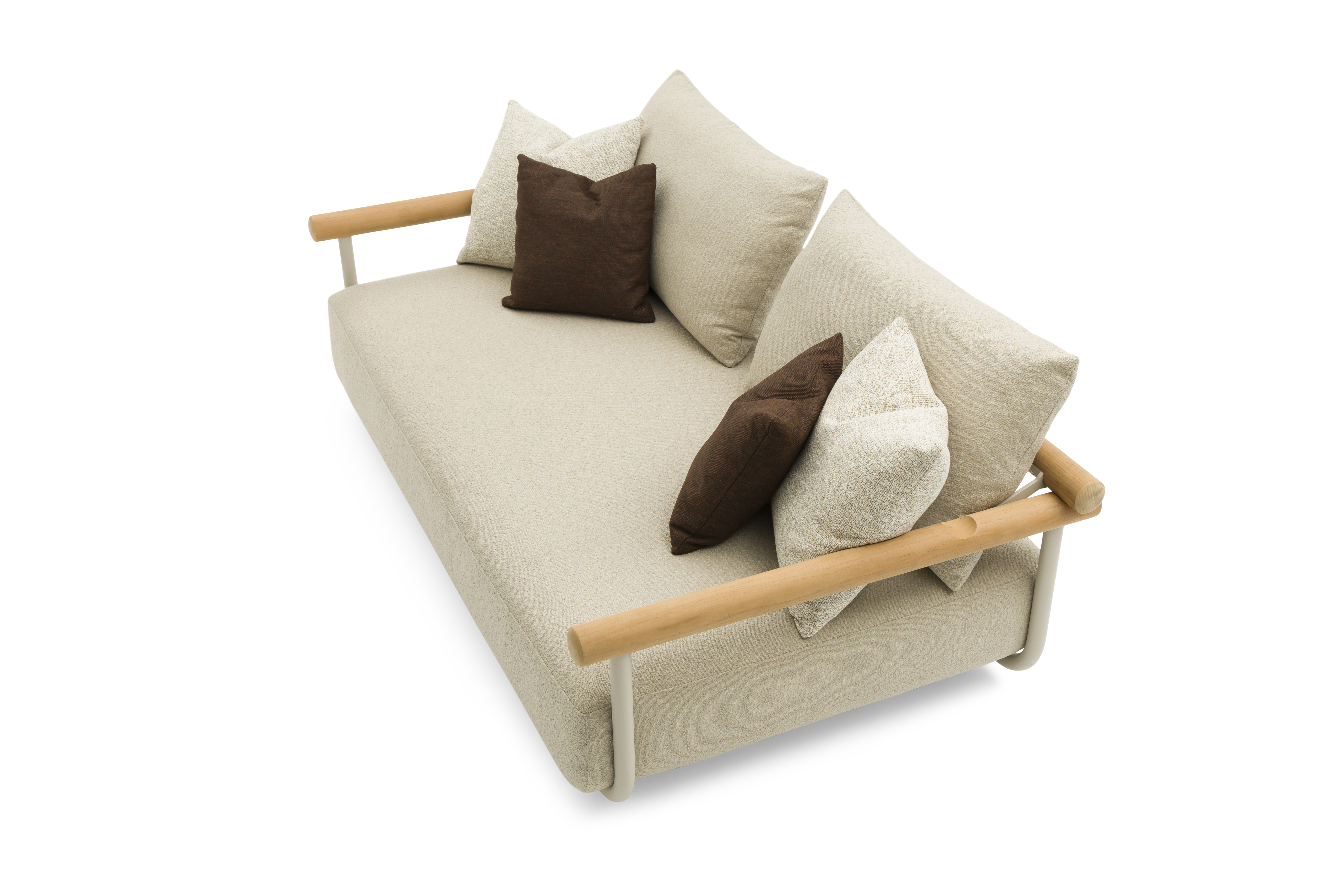 Каркас выполнен из прочного и лёгкого алюминия в сочетании с натуральным тиковым деревом, что гарантирует долговечность и стойкость к погодным условиям. Подушки покрыты водоотталкивающей тканью Олефин с защитой от солнца – они сохранят яркость цвета и комфорт даже при длительном использовании.