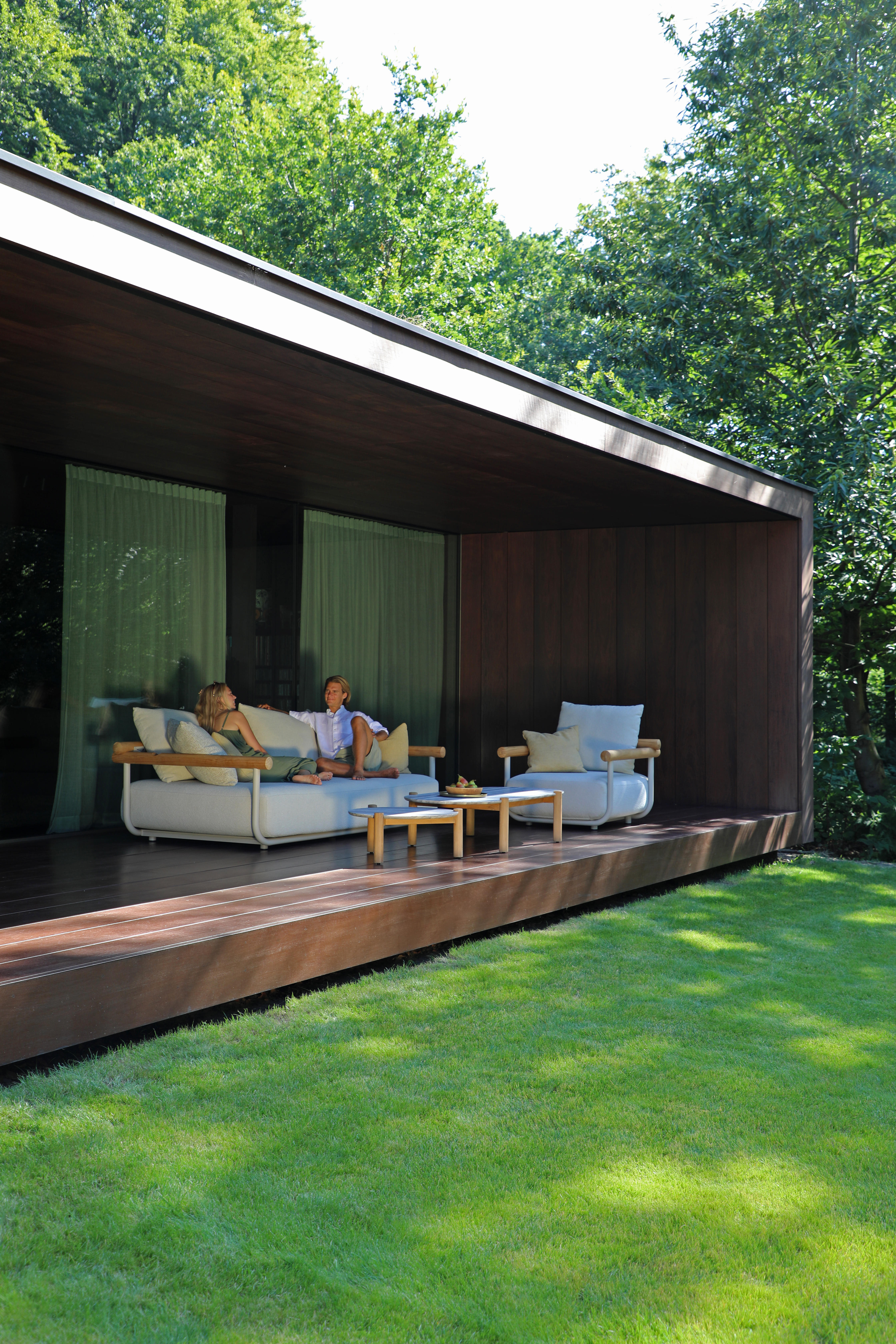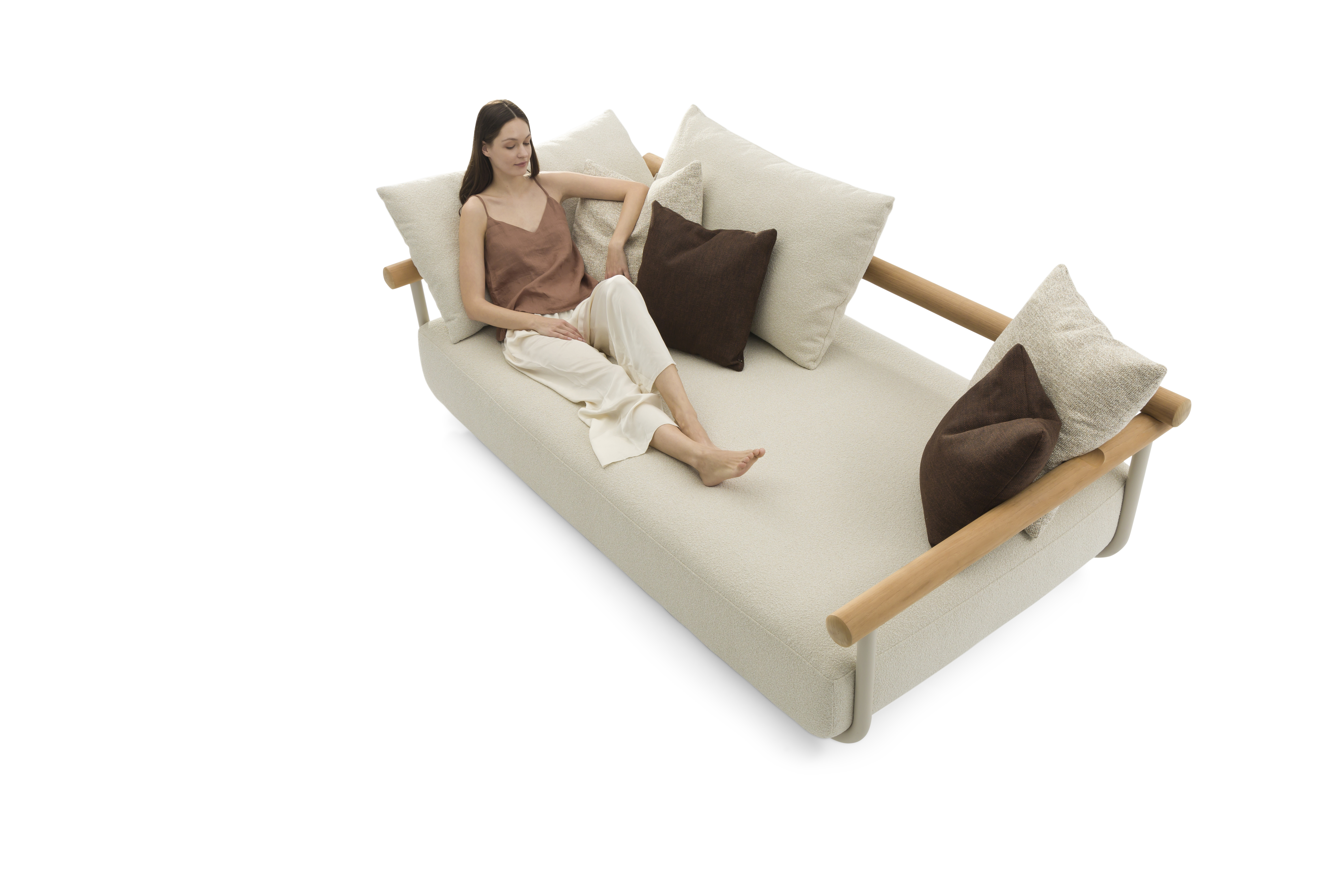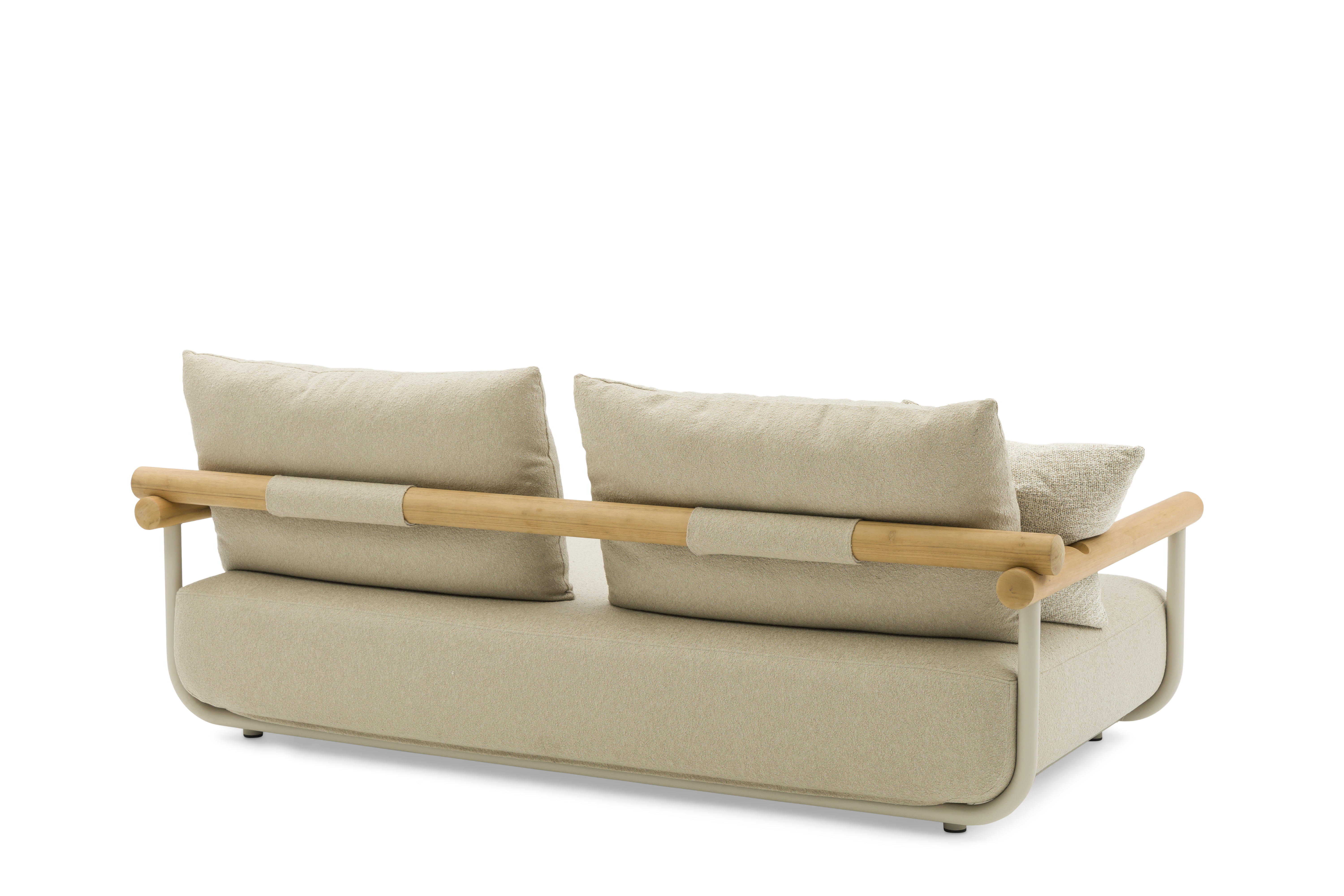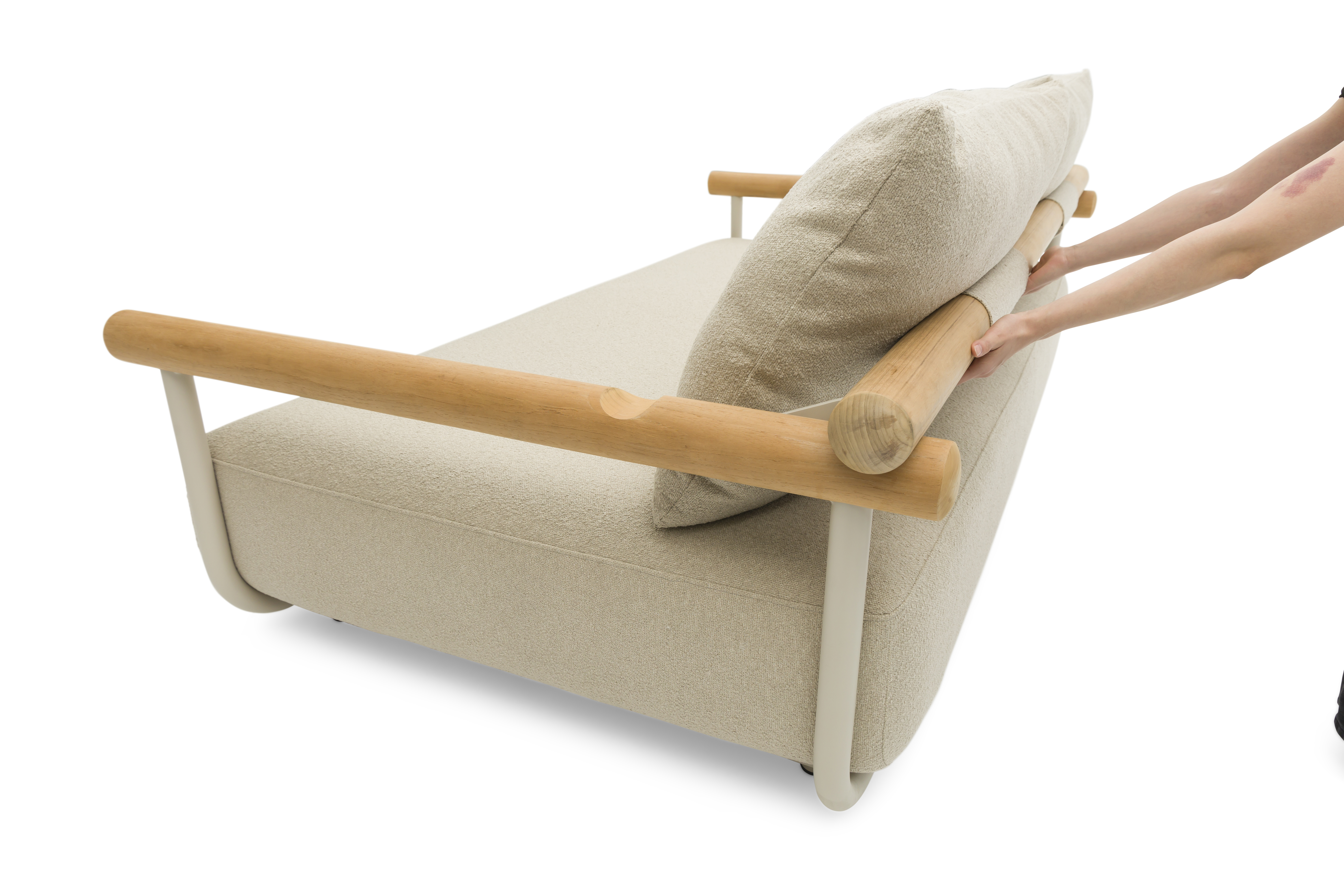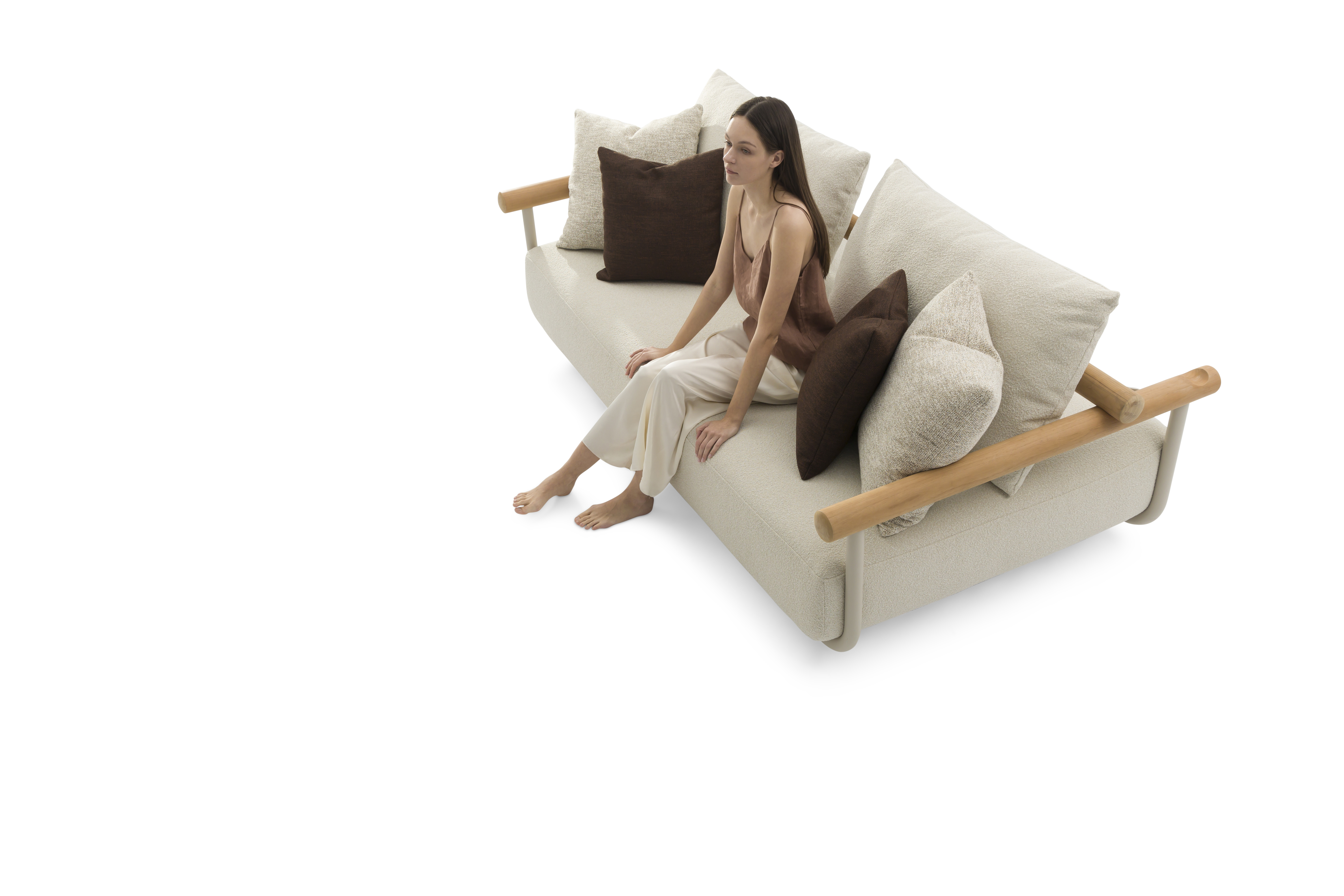 Каркас выполнен из прочного и лёгкого алюминия в сочетании с натуральным тиковым деревом, что гарантирует долговечность и стойкость к погодным условиям. Подушки покрыты водоотталкивающей тканью Олефин с защитой от солнца – они сохранят яркость цвета и комфорт даже при длительном использовании.
