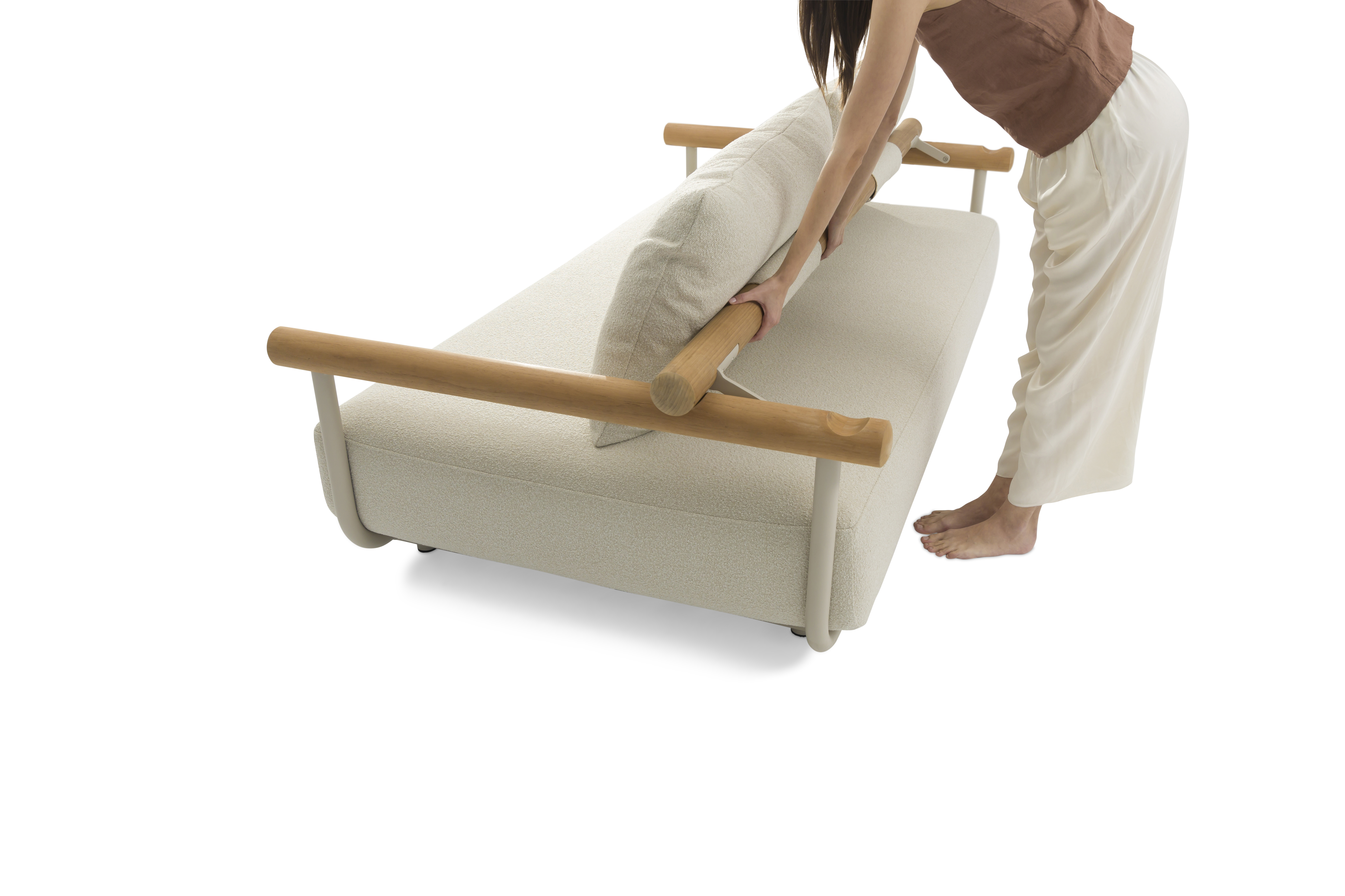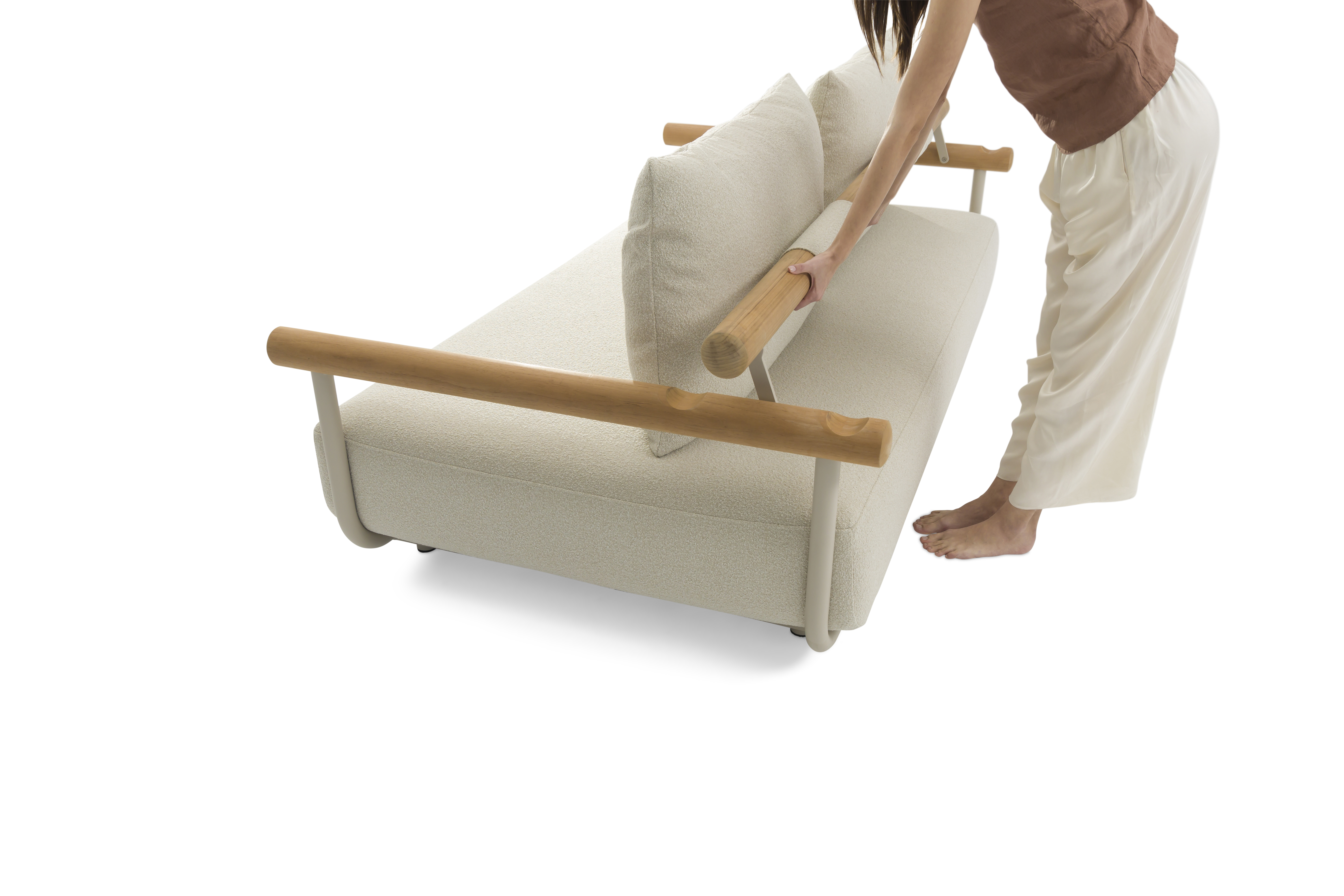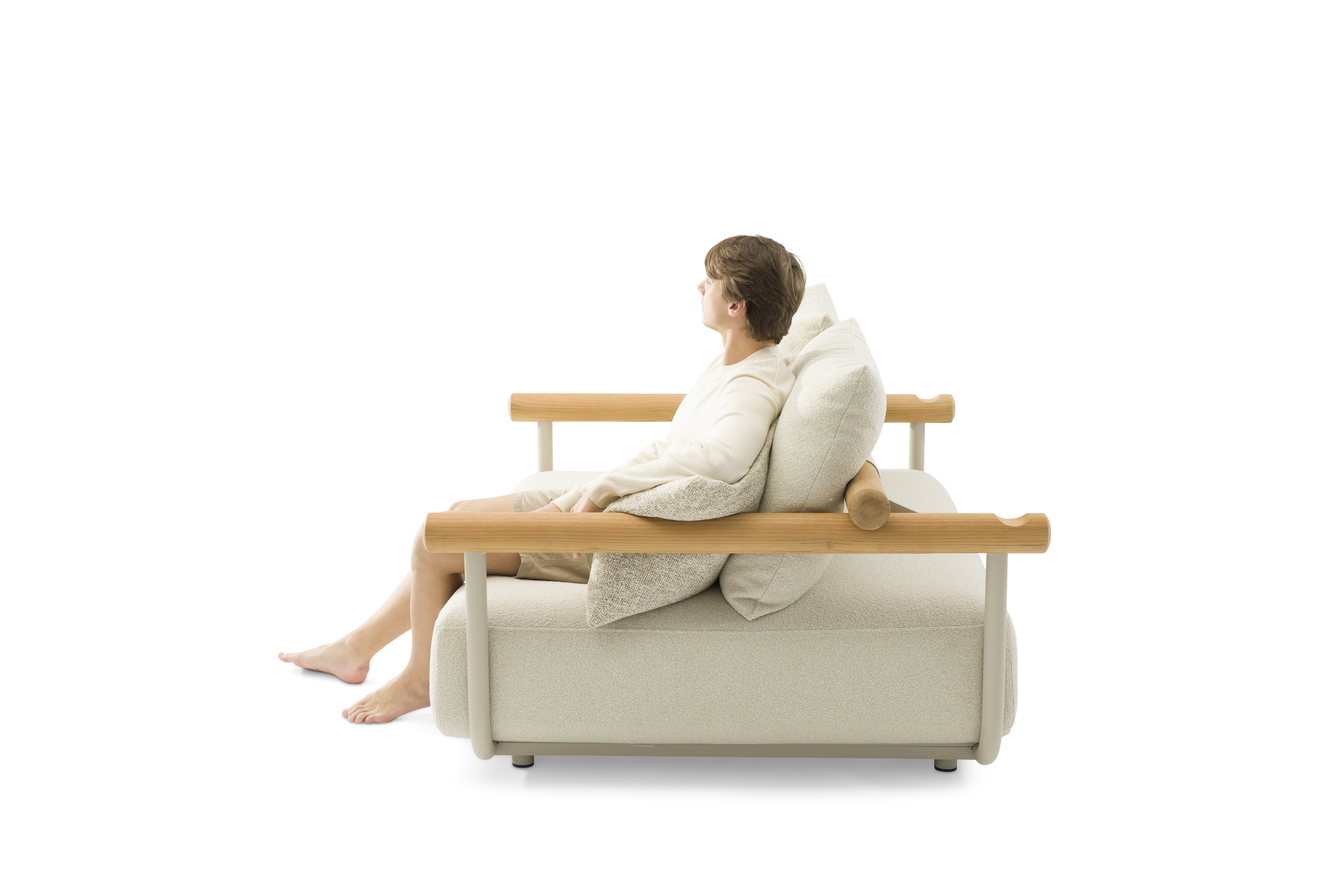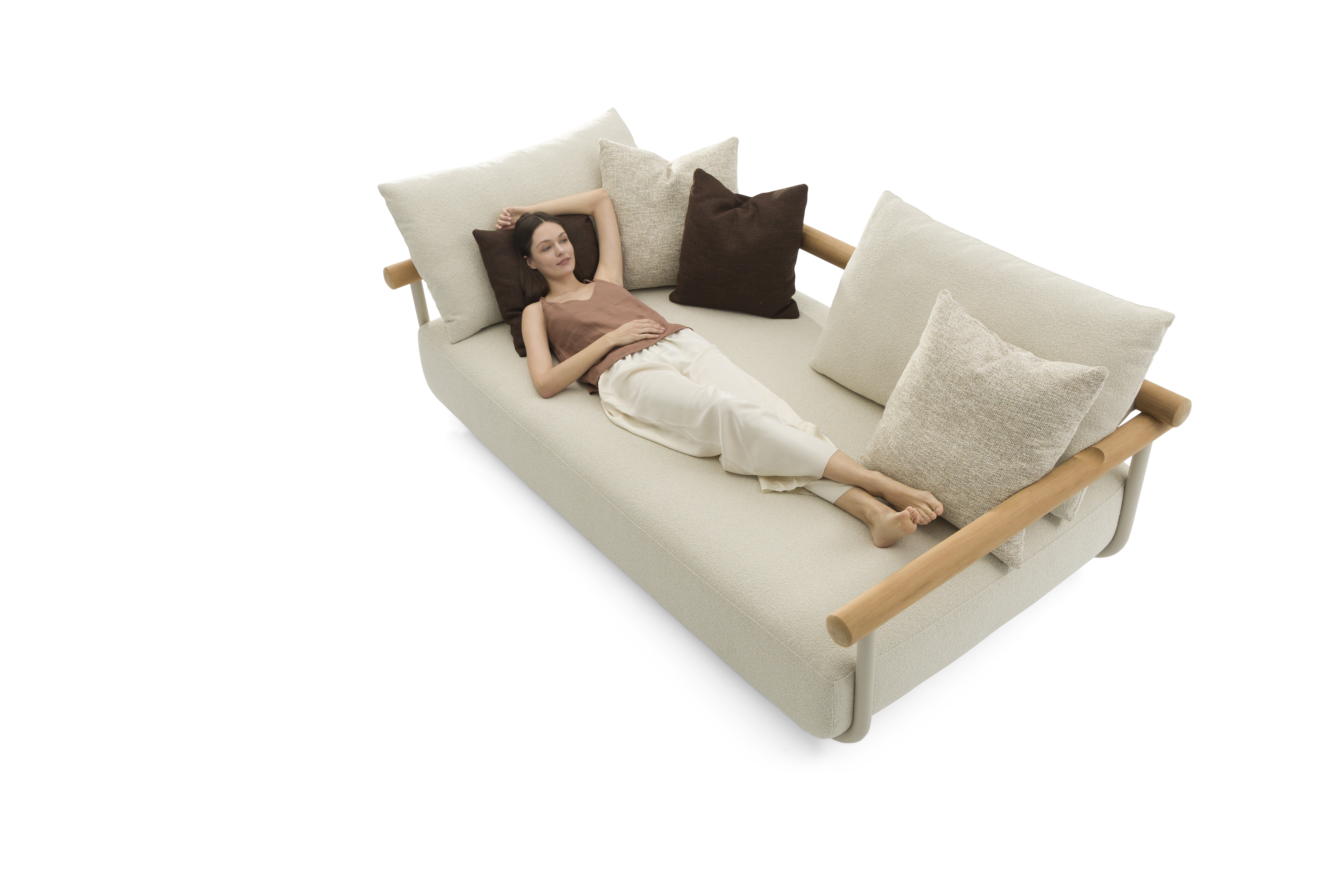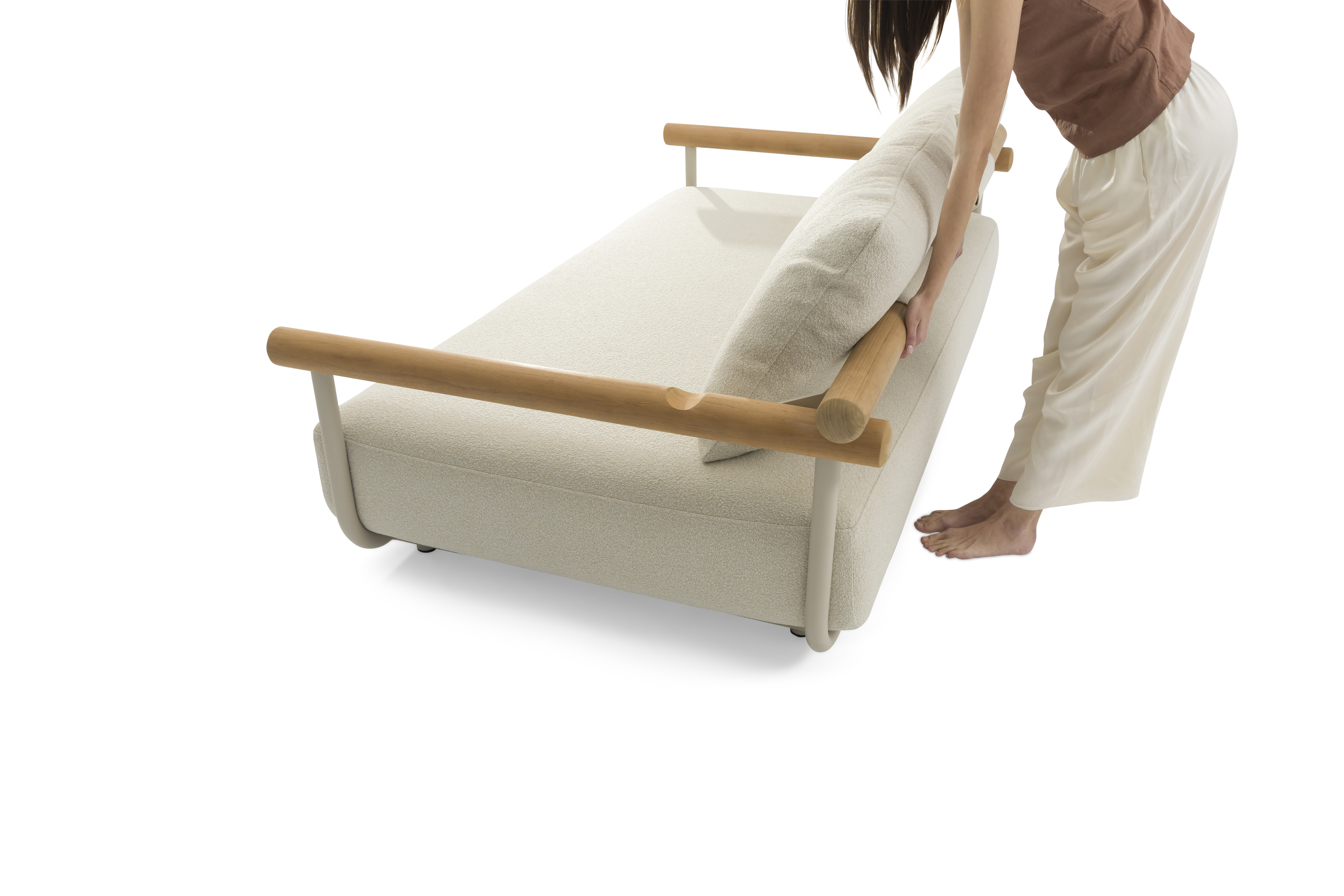 Каркас выполнен из прочного и лёгкого алюминия в сочетании с натуральным тиковым деревом, что гарантирует долговечность и стойкость к погодным условиям. Подушки покрыты водоотталкивающей тканью Олефин с защитой от солнца – они сохранят яркость цвета и комфорт даже при длительном использовании.