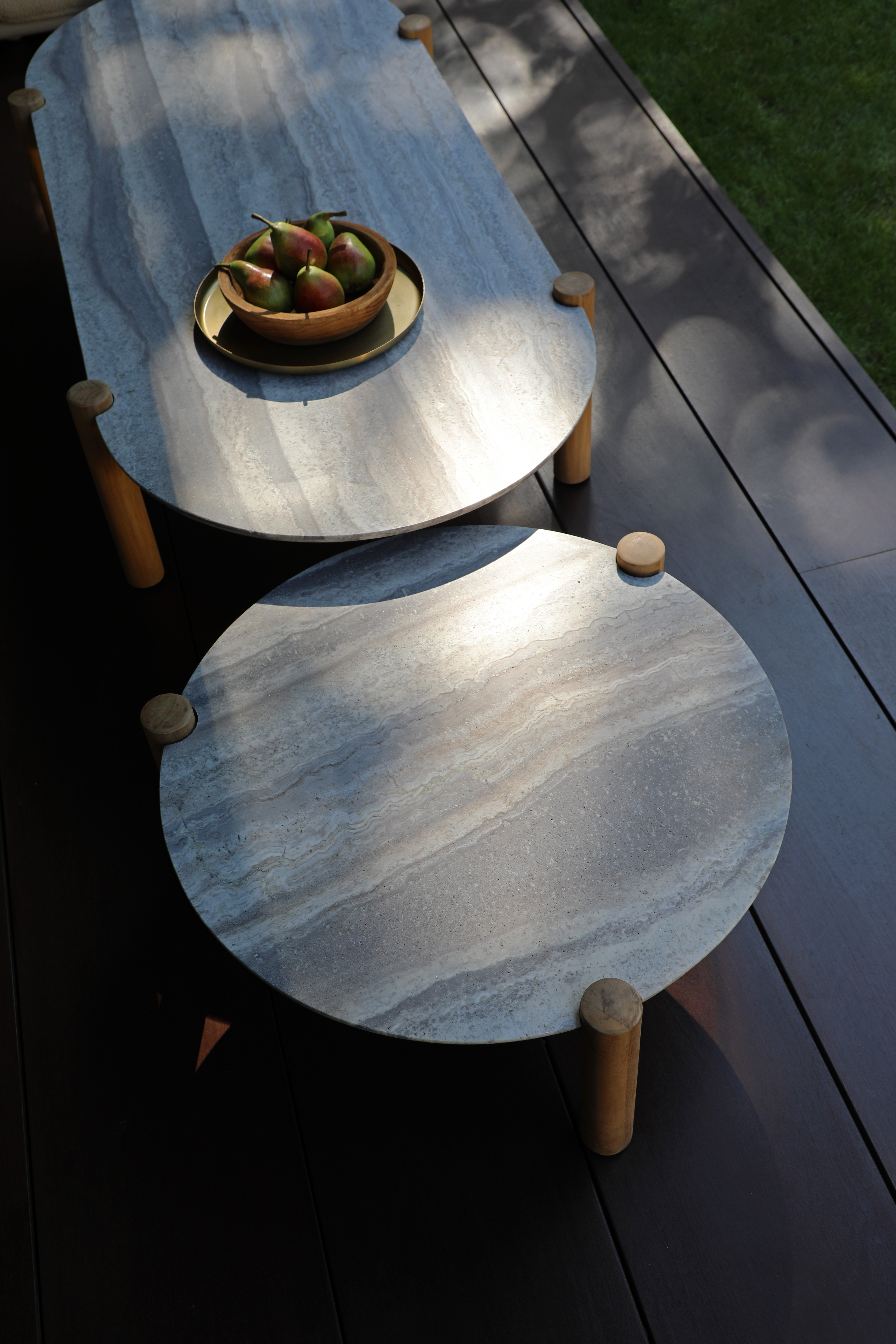 Журнальный столик с натуральной столешницей из травертина привнесёт нотку природной красоты в ваш сад. Камень обладает пористой структурой, лёгкостью, не впитывает воду и не боится высоких температур, сохраняя внешний вид на долгие годы.